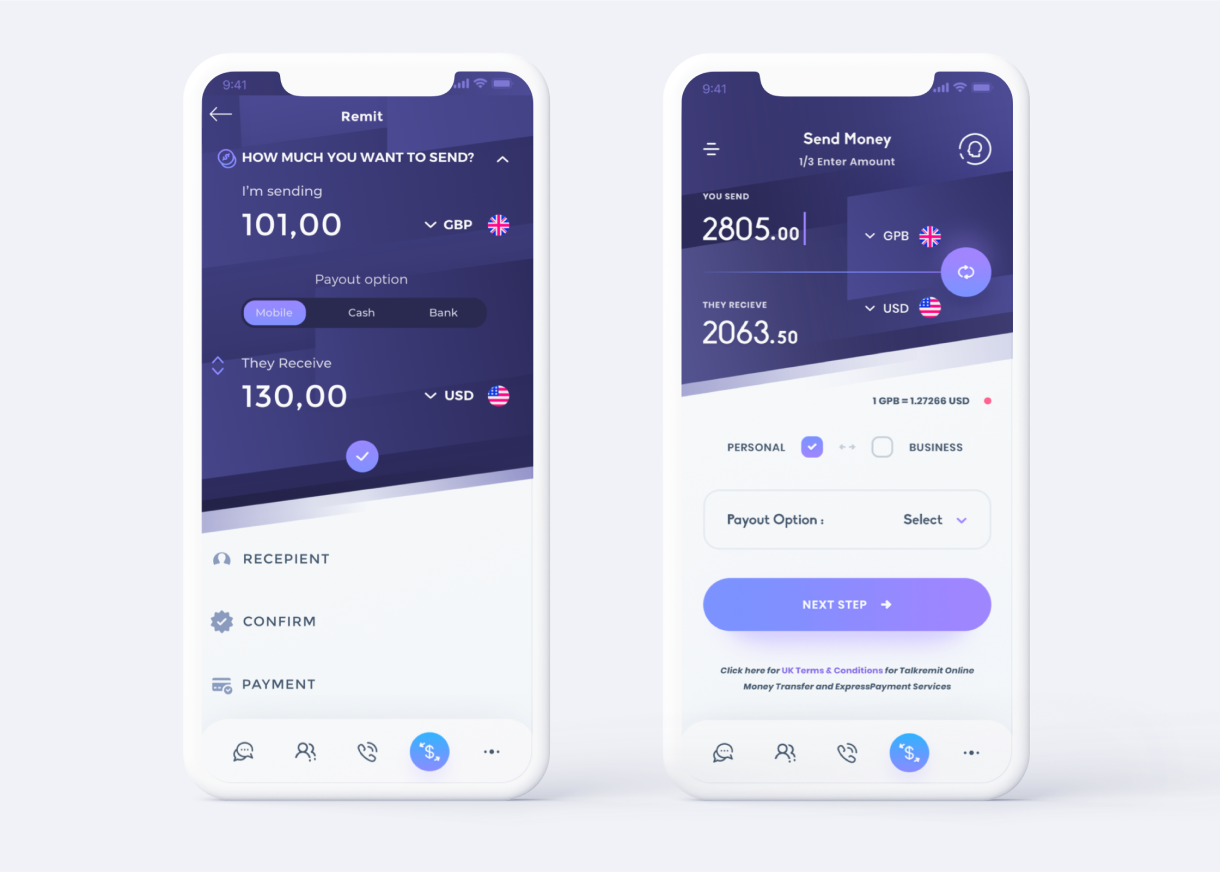 We created a new brand identity for TalkRemit, including a new logo, custom illustrations, a color scheme, and icons. he color scheme for TalkRemit was carefully chosen to convey the brand's values and personality. The strong, clean purple used throughout the brand's visual identity represents reliability and trust. This color choice references the financial sector and signifies stability, which is particularly important in the context of money transfers. We also designed a new website that showcases the brand's offerings and differentiates them from other money transfer platforms.
